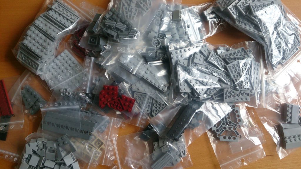 Niestety najtańszy oferent owego węża miał na składzie tylko 1 sztukę (z dwóch potrzebnych), ale mimo wszystko i tak postanowiłem zrobić u niego zakupy, gdyż miał on masę pomniejszych części w dobrych cenach. Tak więc moje trzecie zamówienie to największa jak dotychczas ilościowo paczka, zawierająca 606 sztuk większej i mniejszej drobnicy – i do tego z Francji. W tym wypadku przesyłka stanęła na wysokości swojego objętościowego zadania i przyszła faktycznie w sporym kartonie wypełnionym wysokogabarytowymi elementami.