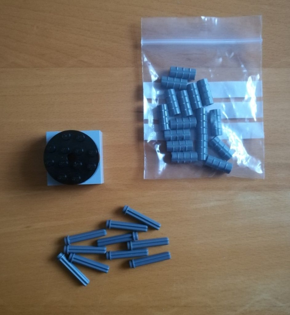 Nikt nie miał kompletu części (dziesięciu rodzajów, jakie mi zostały), a ci którzy mieli np. dziewieć windowali ceny niebotycznie. Tak więc nadal ciułamy. Dodatkowo przeglądając oferty zauważyłem, że na mojej liście pojawił się wyjątkowo kosztogenny element – obrotowa podstawka, która na początku projektu była do kupienia w sklepie LEGO za niecałe 5 zł. Teraz już dawno nie ma jej w sklepie, a na rynku trzeba dać za nią co najmniej 40 zika – fak. Tak więc wokół tego hitu postanowiłem zbudować to zamówienie.