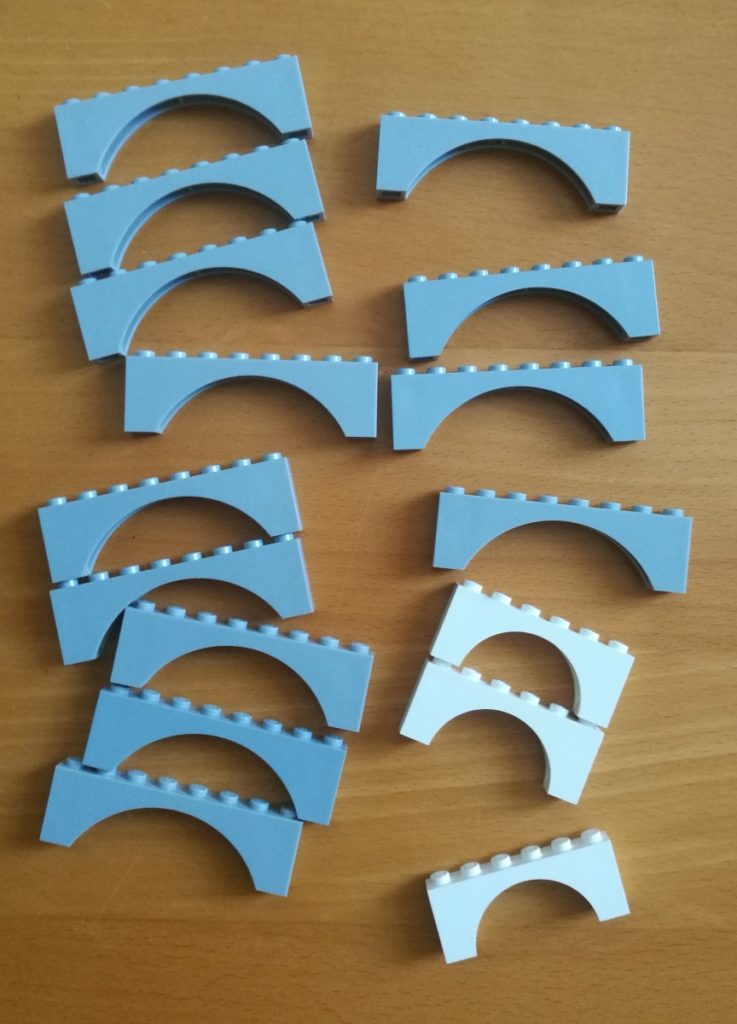 Idąc wg utartego schematu teraz skupiłem się na budowlanych łuczkach z klasycznego LEGO, których potrzebuję 13 sztuk. W miarę najsensowniejszą ofertę znalazłem we Francji, gdzie wtedy jeszcze koronawirusa aż tak bardzo nie było.